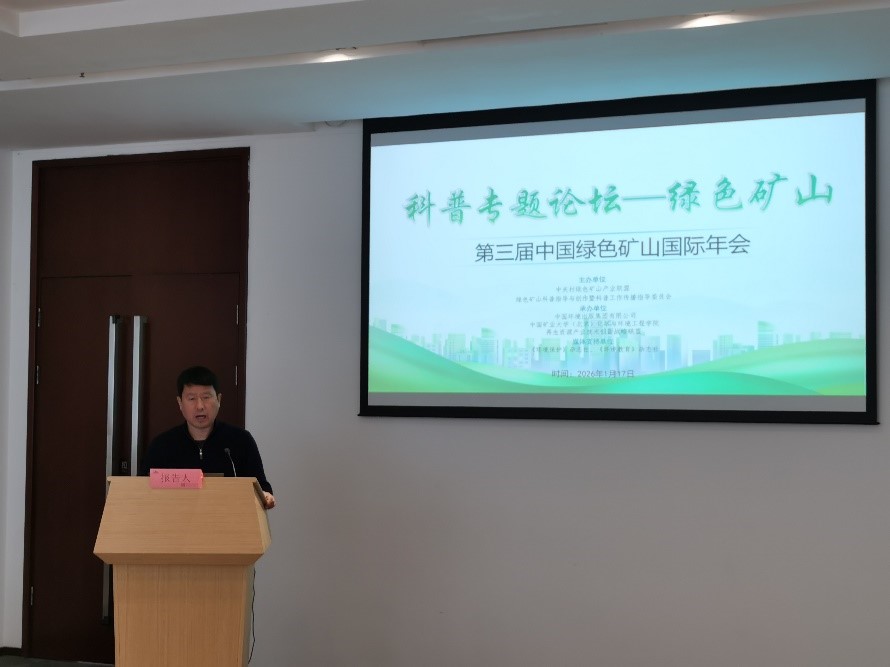 2026年1月16-18日,由中關村綠色礦山產業聯盟(以下簡稱“中綠盟”)聯合中國恩菲工程技術有限公司主辦的第三屆中國綠色礦山國際年會在北京召開。本屆年會以“建設綠色礦山、開發綠色礦產、保障資源安全”為主題,匯聚國內外礦業領域精英翹楚共話綠色礦業未來,承載著推動礦業邁向更清潔、更智慧、更共融未來的共同愿景。中國環境出版集團副董事長賈金虎受邀出席,并在綠色礦山科普論壇上致辭。