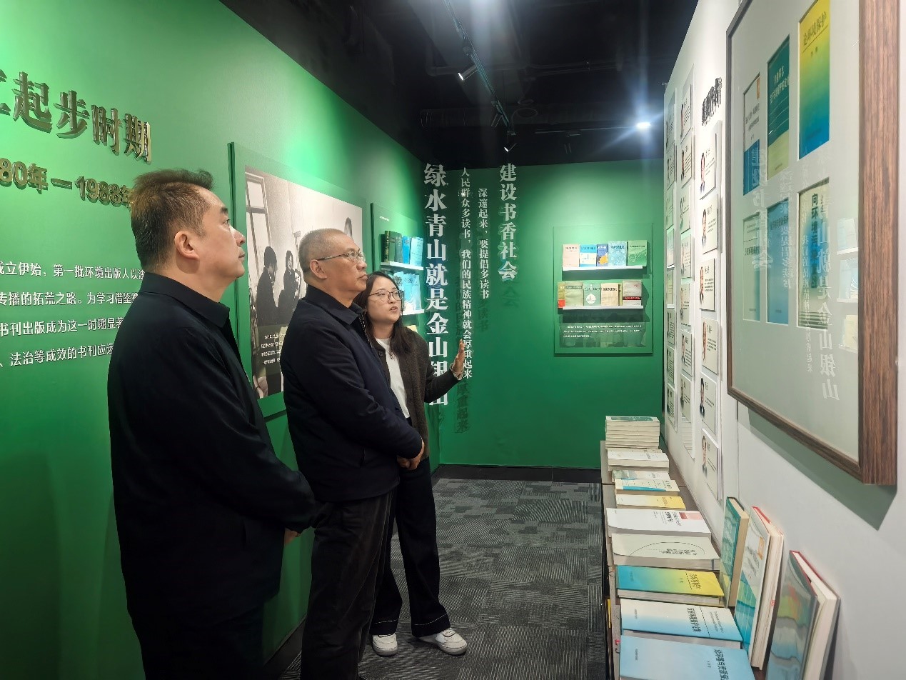 調(diào)研中,潘碧靈一行參觀了集團版本室,詳細了解集團發(fā)展歷程、精品圖書出版及融合出版實踐,對出版集團作為生態(tài)環(huán)境部直屬專業(yè)出版機構(gòu),在宣傳國家環(huán)保方針政策、傳播環(huán)境科學(xué)知識、提升全民生態(tài)意識中發(fā)揮的重要作用給予肯定。