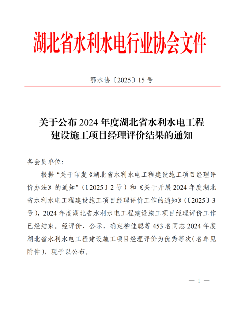 熱烈祝賀柳景峰、周純、盧瓊、鐘廣菊、余少華、譚文斌、張陳、李安定、羅焰輝、熊璧、秦德熙、周衛紅、陳小寧共13人,榮獲“湖北省水利水電工程建設施工項目經理評價優秀等次”!