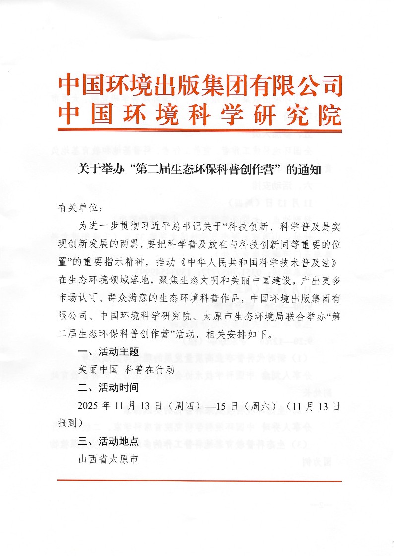 創(chuàng)作營期間,主辦方中國環(huán)境出版集團將發(fā)布“科普作品招募計劃”,與創(chuàng)作者攜手產(chǎn)出更多市場認可、群眾滿意的生態(tài)環(huán)境科普作品。